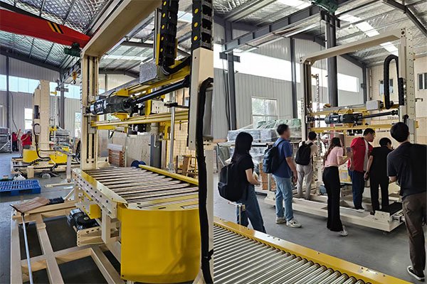 近日,全球某第一梯隊鋰電池品牌后道無人化包裝項目客戶來司參觀,客戶團隊主要考察了我公司PET托盤打包機產品和其他后道包裝設備,并且詳細咨詢了我公司配電總柜的技術標準和工藝規范。該項目共計2條無人化包裝線,涉及的工藝包括:鋰電池托盤捆扎、鋰電池托盤輸送、鋰電池防靜電拉伸膜托盤纏繞,以及托盤貼標等。
