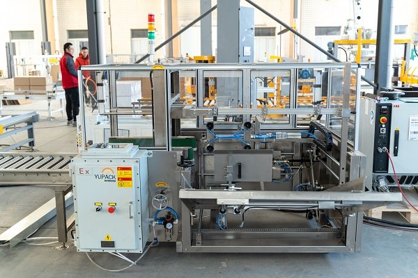 不銹鋼防爆開封箱捆扎包裝線是由防爆開箱機、防爆封箱機與防爆捆扎機組合而成的。該線體整線可達到BT4防爆等級,304不銹鋼材質,耐腐蝕性更強。廣泛用于軍工、煙花爆竹、化工等領域,亦可用在粉塵比較大的食品以及藥瓶領域。