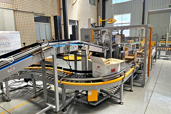 紙盒裝箱碼垛包裝線是包裝行業非常典型的線體,但由于裝箱以及碼垛的方式不同,該線體又會有很多種不同的布局方式。針對紙盒類產品的裝箱,常用的裝箱方式為翻轉側推裝箱和平移式裝箱,當盒子的上蓋為未完全封閉固定的情況下,就需要用翻轉側推裝箱方式,該方式的最大特點是機器可自動將紙盒整理成需要的裝箱形式,排、列、層都會提前堆疊好,一次性推進紙箱,有效解決紙盒散落以及裝箱無序的問題。
