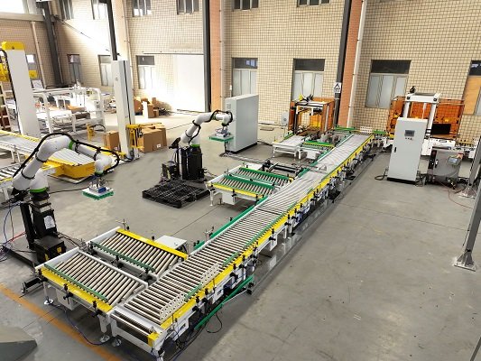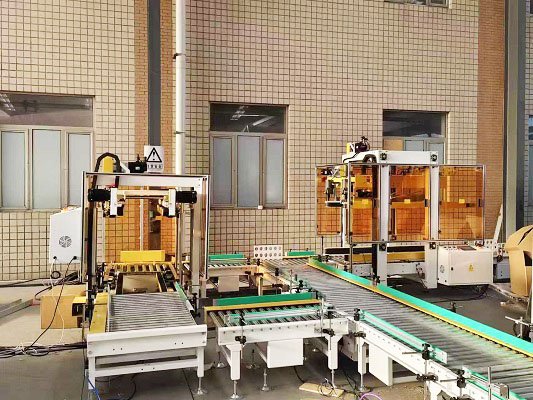 全自動伺服封箱機是采用伺服電機為主要驅動機構,針對不同紙箱的混產情況,用戶可提前將所有紙箱錄入封箱機內,由上位機與封箱機通訊,可實現紙箱的一鍵換產,一字封與工字封可任意切換和選擇,尾端配有貼標和移載機構,由光電識別將不同的紙箱碼到不同的托盤上,該線體配備了進口協作式機器人,立柱可升降,充分滿足不同高度及垛型的需求。性能更穩定,占地面積小,成本低。